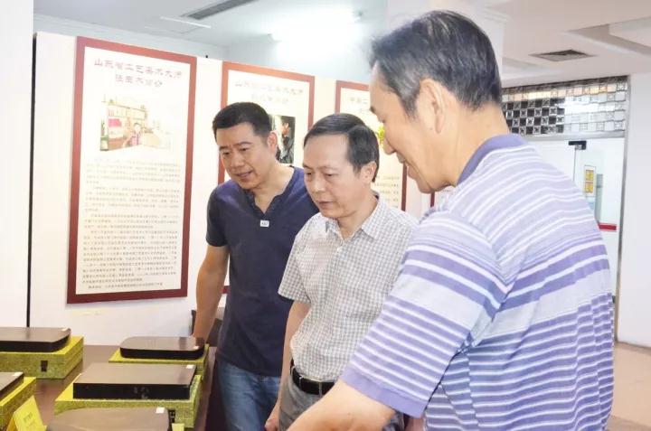 2017年9月15日,集團公司黨委書記、總經理虞岳明同志在省工藝品總經理方華同志的陪同下,參觀了由省工藝品公司主辦的“特邀亞太地區手工藝大師劉克唐師生魯硯展”。集團辦公室副主任葉如清,省工藝品公司林信同志,以及相關部門負責人一起隨同參觀 。展會負責人許小龍對本次展覽作品進行了詳細介紹,總經理虞岳明認真觀看了每一件作品,對此次魯硯展給予了高度評價,并就如何推動工藝美術文化事業發展作出了重要指示。
